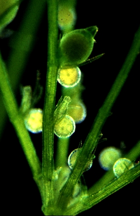 Detail van een kranstak met gametangia.